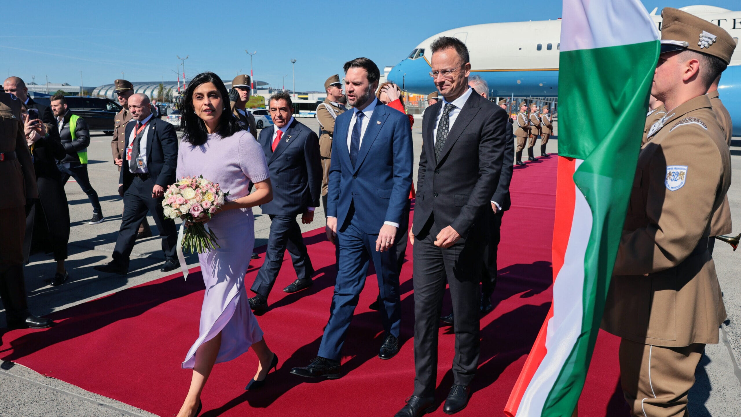 JD Vance ve karısı Usha Vance, Air Force Two’dan inerken fotoğraflandı.